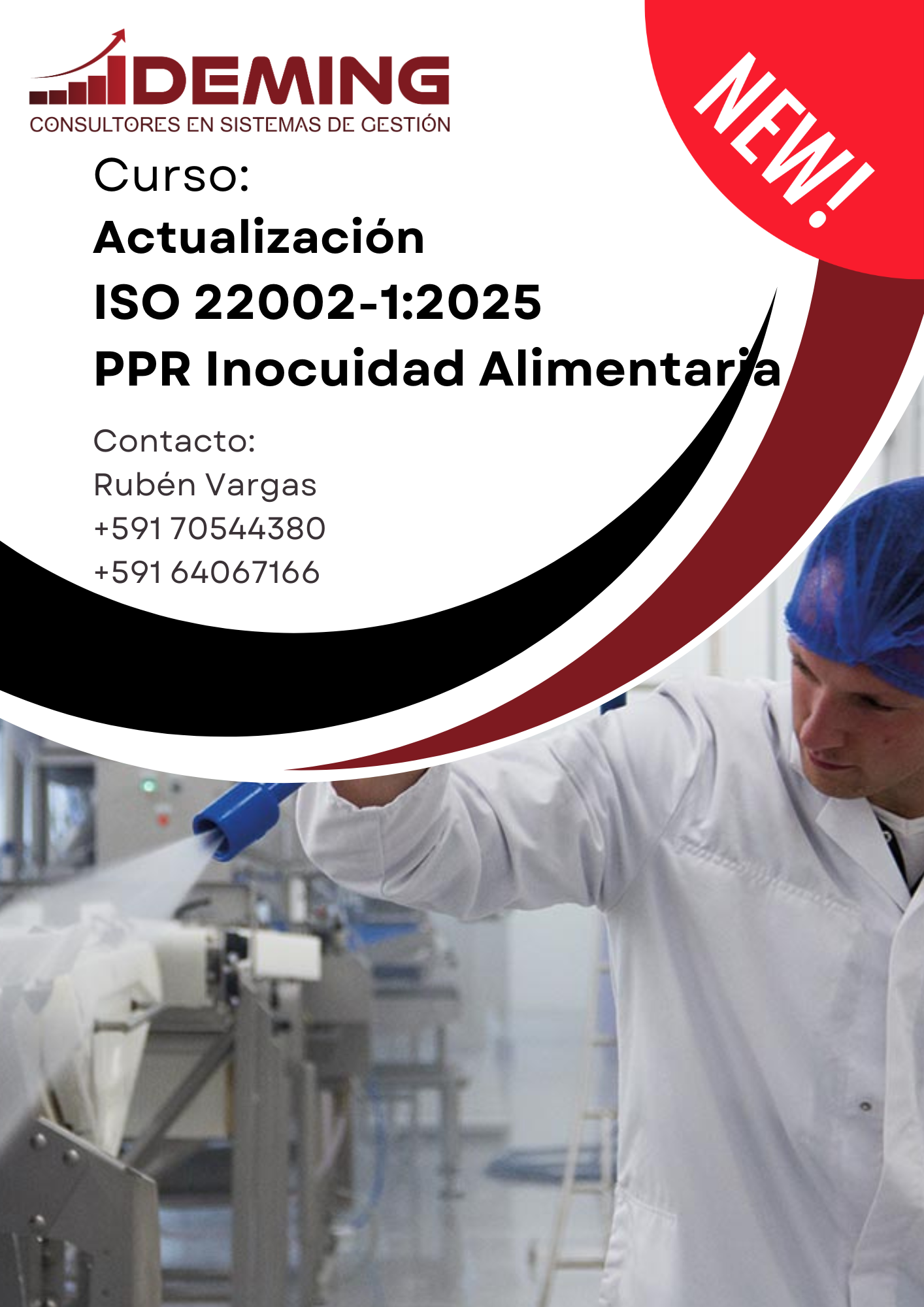 cursos DISPONIBLES iso 22002-1:2025 actualización ppr de inocuidad Descargar el folleto en PDF Contáctanos KPI PARA SISTEMAS DE GESTIÓN DE CALIDAD E INOCUIDAD Descargar el folleto en PDF Contáctanos TALLER POWER BI INICIAL APLICADO A SISTEMAS DE GESTIÓN Descargar el folleto en PDF Contáctanos IA INTEGRADA EN INOCUIDAD ALIMENTARIA - HERRAMIENTAS BÁSICAS Descargar el folleto en PDF Contáctanos Microbiología en la Industria de Alimentos y Bebidas Descargar el folleto en PDF Contáctanos Planes de Limpieza y Desinfección en la Industria de Alimentos Descargar el folleto en PDF Contáctanos Análisis de Peligros yPuntos Críticos de Control HACCP Descargar el folleto en PDF Contáctanos Pre Requisitos de Inocuidad AlimentariaISO 22002-1 Descargar el folleto en PDF Contáctanos Buenas Prácticas de ManufacturaNB/MN 324 Descargar el folleto en PDF Contáctanos Gestión de Control de Plagas en la Industria Alimentaria Descargar el folleto en PDF Contáctanos Desarrollo del Líder y Equipo de Seguridad Alimentaria Descargar el folleto en PDF Contáctanos Plan de Defensa AlimentariaFSSC 22000 Descargar el folleto en PDF Contáctanos Mitigación del Fraude AlimentarioFSSC 22000 Descargar el folleto en PDF Contáctanos formulario de CONSULTAS O inscripción Nombre *Número de teléfonoDirección de correo electrónico *Nombre del curso de su interésMensaje0 / 180Comprobante de Pago (Opcional)Elegir archivoNingún archivo seleccionadoEliminar el archivo subido Enviar mensaje formas de pago Depósito Bancario: Banco Mercantil Santa CruzNo: 1003592304A nombre de Rubén Alejandro Vargas Vargas